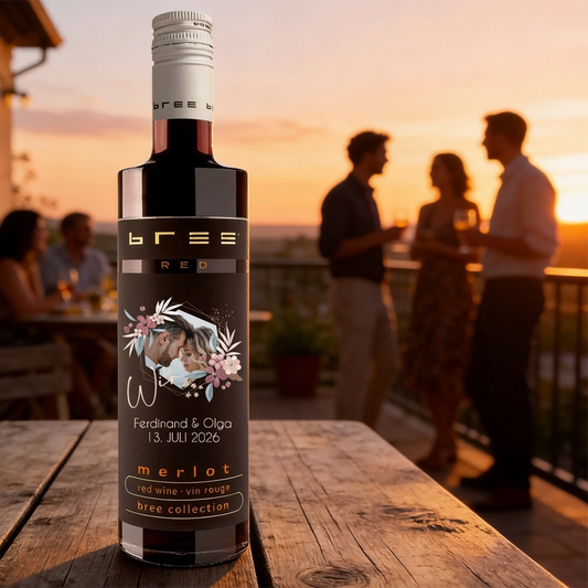 Fotogeschenk Bree Weißwein | Rotwein | Rosé Weinflasche bedruckt zur Hochzeit | Liebe