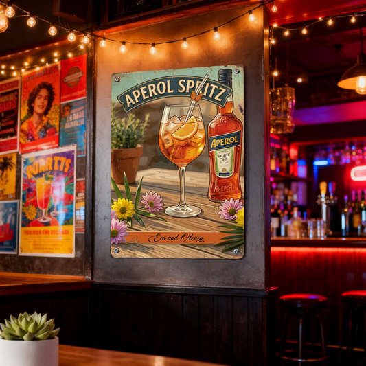 Blechschild für Aperol Spritz im Retro Look mit Namen bedruckt