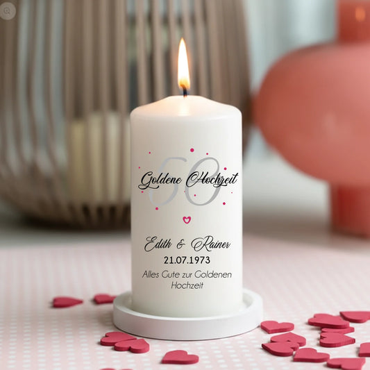 Silberhochzeit | Goldene Hochzeit personalisierte Kerze mit Namen
