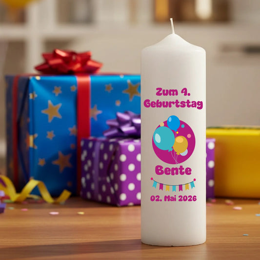 Geburtstagskerze für Mädchen mit Name und Wunschtext bedruckt
