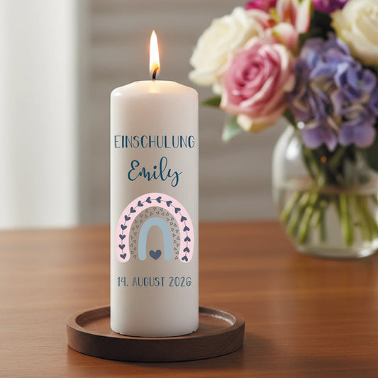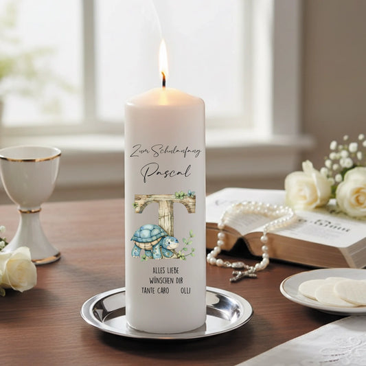 Personalisierte Kerze zum Schulanfang mit Name und Datum