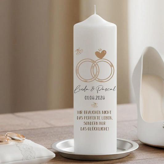 Bedruckte Kerze zur Hochzeit mit Ringen persönlich gestalten