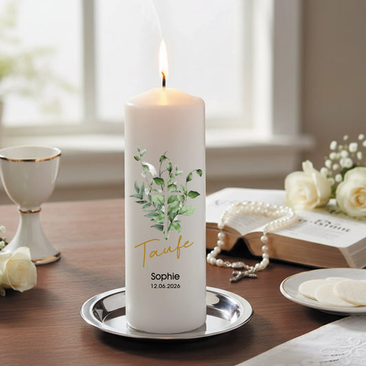 Individuell bedruckte Kerze zur Taufe mit deinem Namen