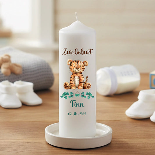 Geburtskerze Tiere mit Name und Datum bedruckt