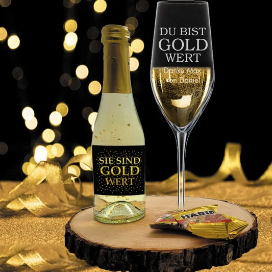Sekt/ Piccolo Geschenkset mit Gravur Du bist Gold wert