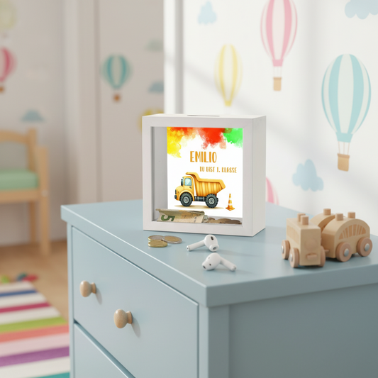 Bedruckte Spardose für Kinder zum Schulanfang