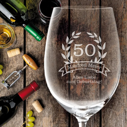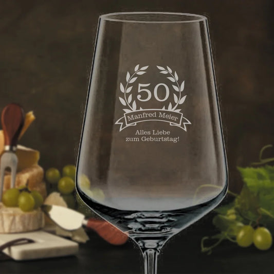 Modernes Weinglas mit Gravur zum Geburtstag