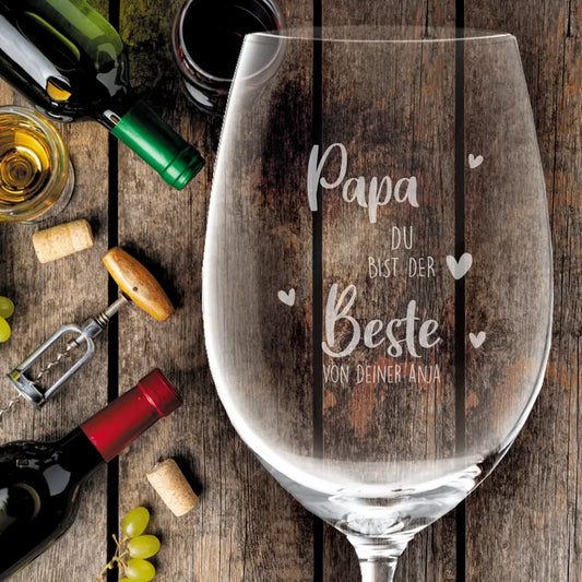 Weinglas mit Gravur von Leonardo für die Familie