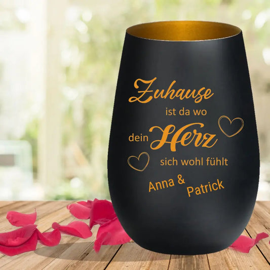 Zuhause ist da wo dein Herz sich wohl fühlt - Windlicht mit Gravur