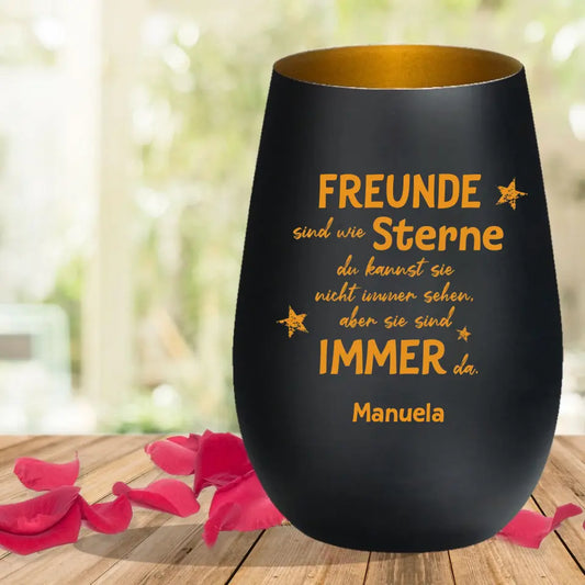 Freunde sind wie Sterne - individuell graviertes Windlicht