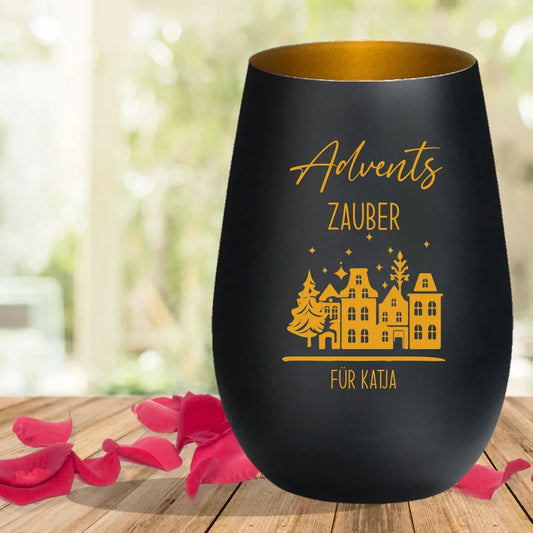 Windlicht zu Weihnachten "Advents Zauber" mit deinem Namen graviert