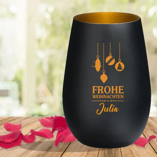 Individuell graviertes Windlicht mit Christbaumkugeln