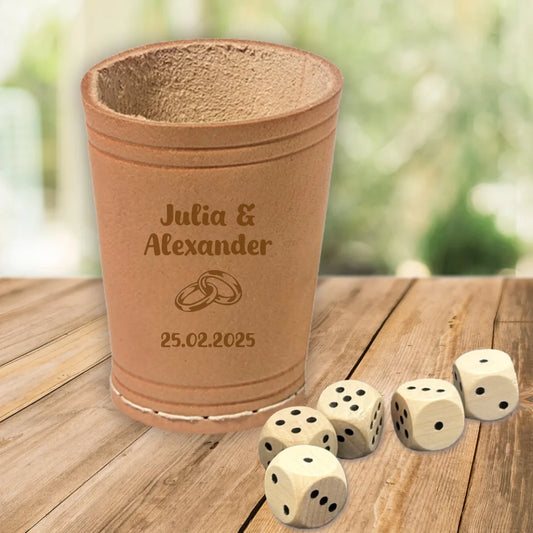 Individuell gravierter Würfelbecher zur Hochzeit mit Namen