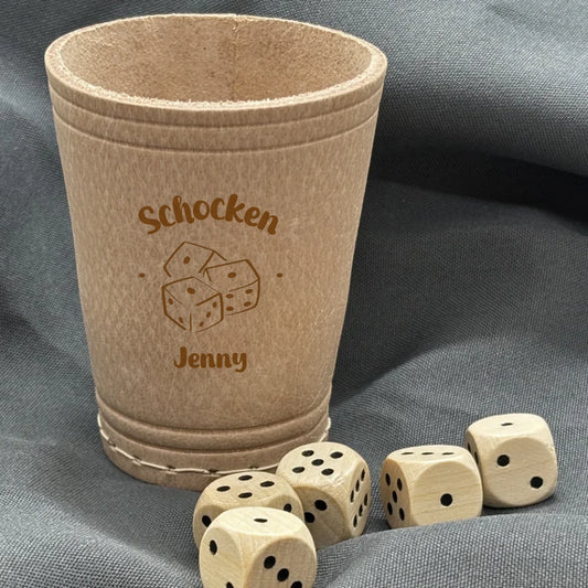 Würfelbecher mit Namen graviert Schocken