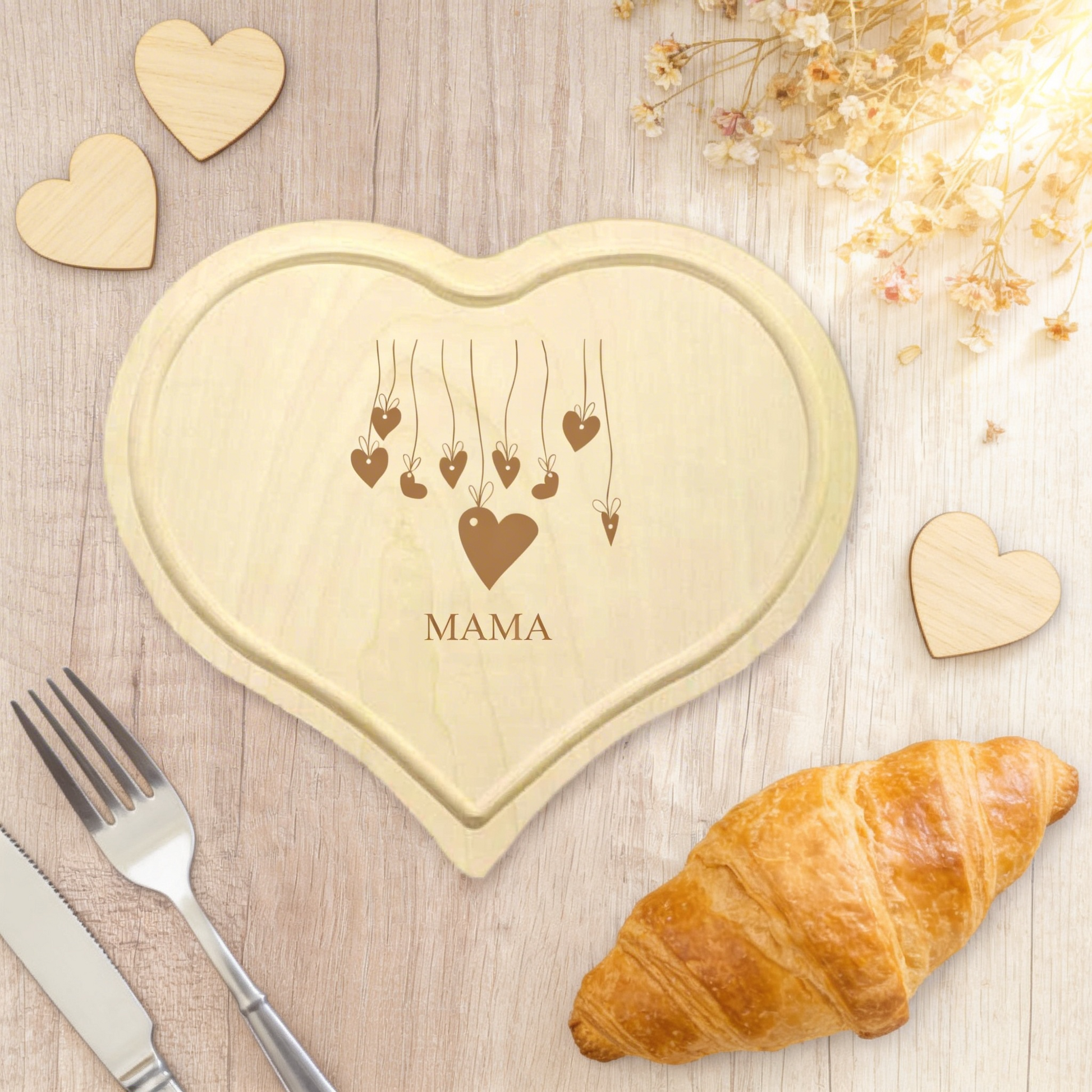 Frühstücksbrett aus Holz mit Herzen und deinem Namen graviert