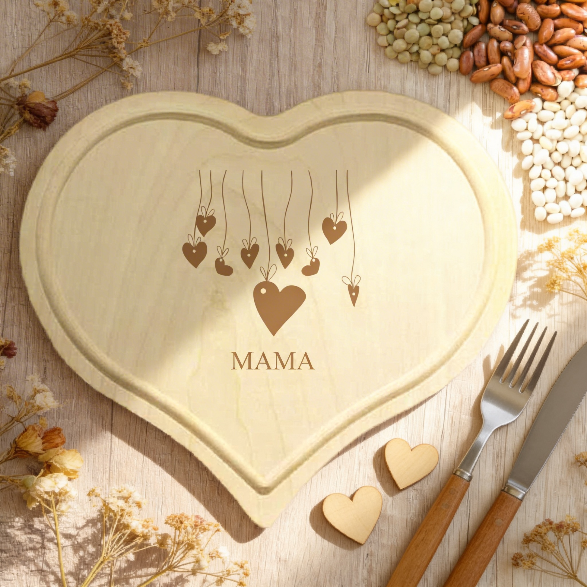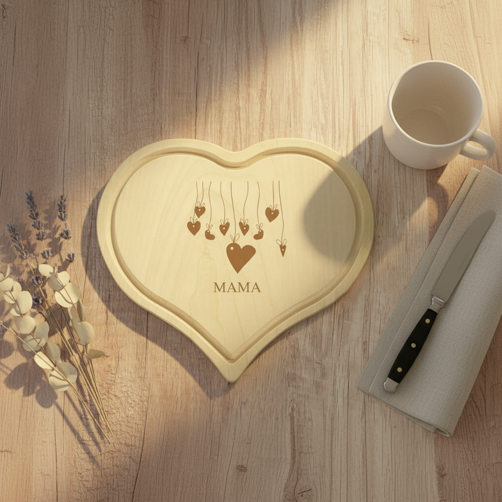 Beginne jeden Tag mit einem Lächeln und genieße dein Frühstück auf diesem wunderschönen, personalisierten Holzbrett mit eingravierten Herzen und Namen. Ein einzigartiges Unikat, das dich und deine Lieben inspirieren wird.