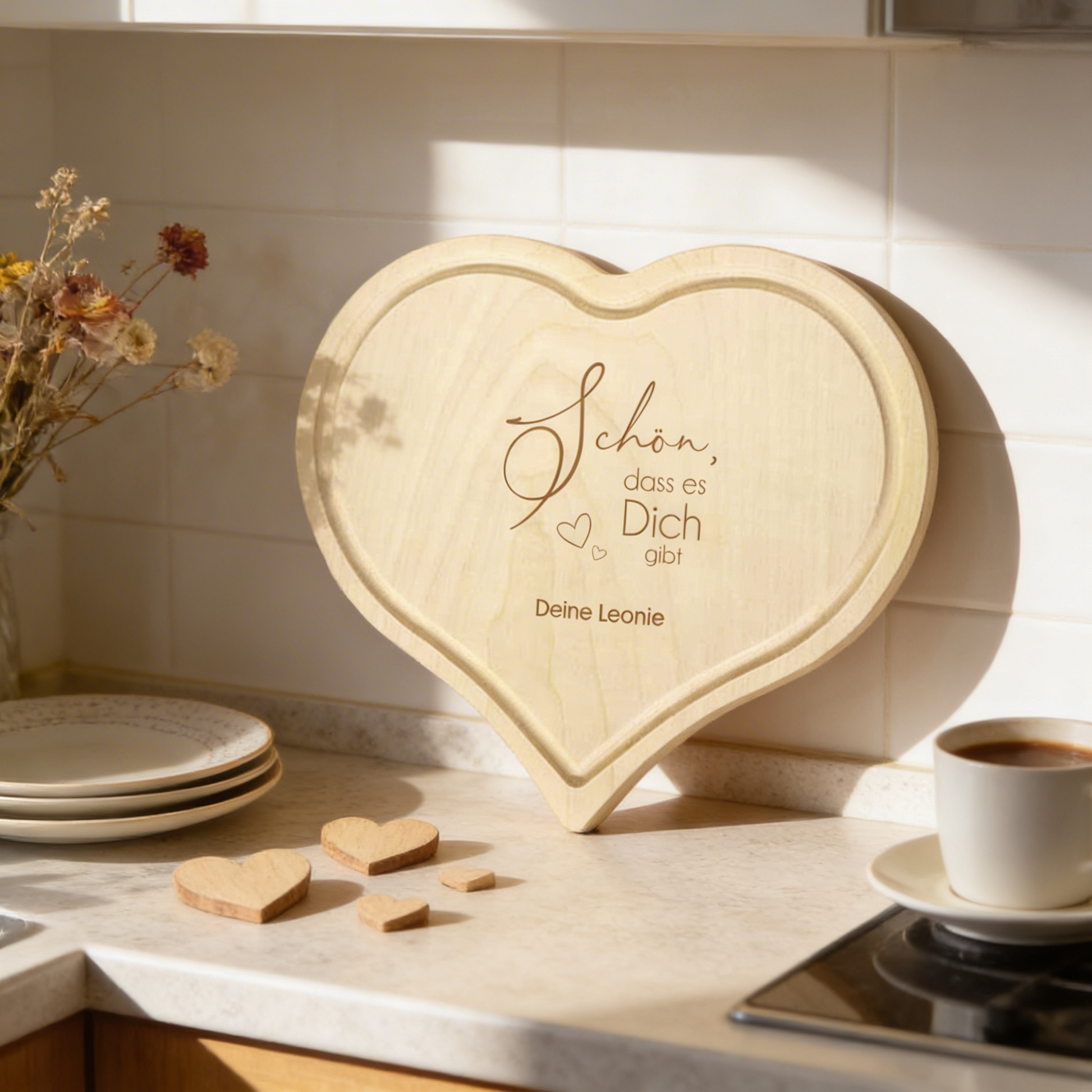 Schön, dass es dich gibt - Herzbrett / Schneidebrett mit individueller Gravur